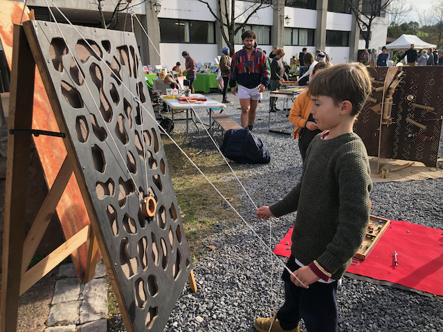 Venez tester votre dextérité et votre réflexion sur la zone ludique de la Fabrique Adabrak. Collaborations obligées pour certaines installations et matchs effrénés rythment cet espace d’échange à travers le jeu. Une collection d’une quinzaine de jeux en bois et de circuits de billes originaux sont proposés qui permettent à environ 35 personnes de vivre un moment authentique!